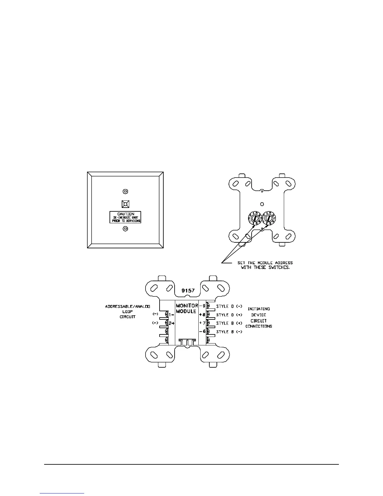 The 9157 (System Sensor M500MB) monitor module provides (1) Style "B" (2-wire) initiating circuit or (1)