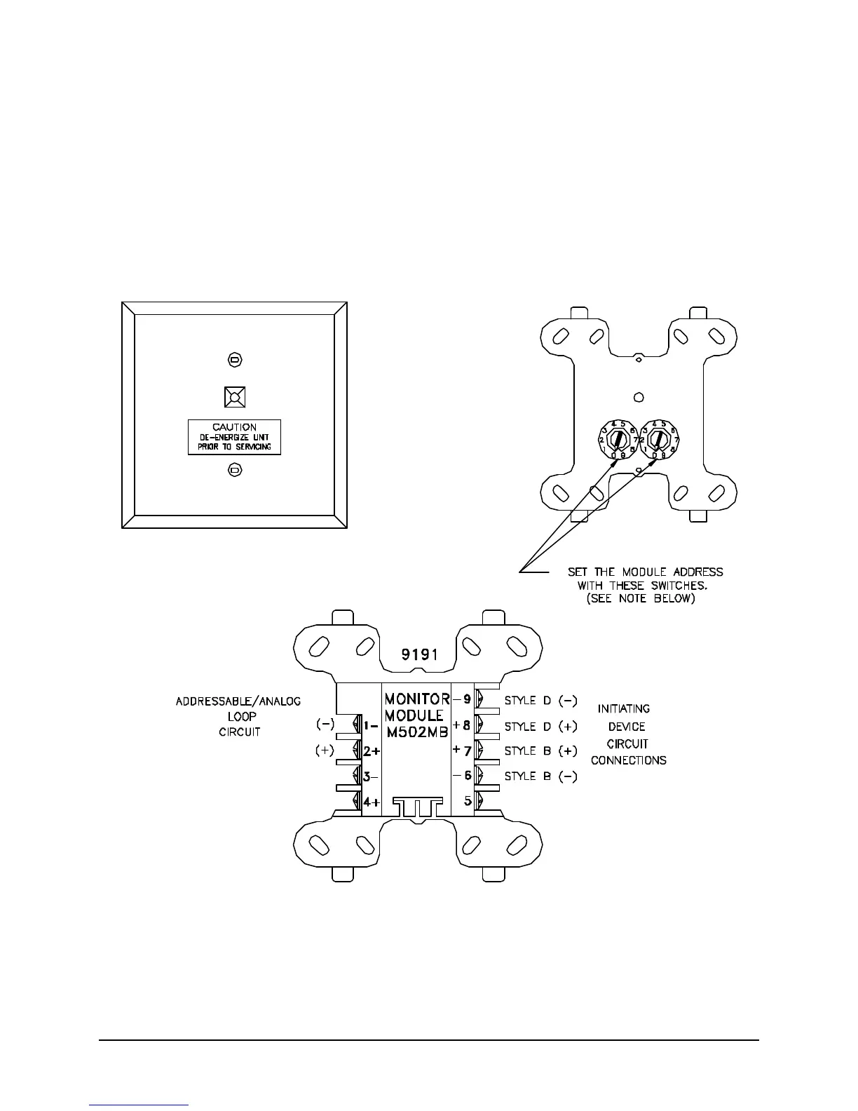 The 9191 (System Sensor M502M) addressable Interface Module allows the addressable device circuit to