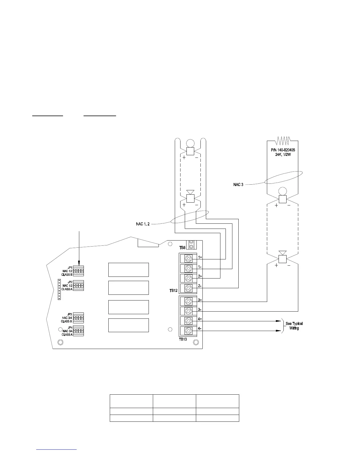 Use the following table to configure the NACs for either Class A or Class B operation by