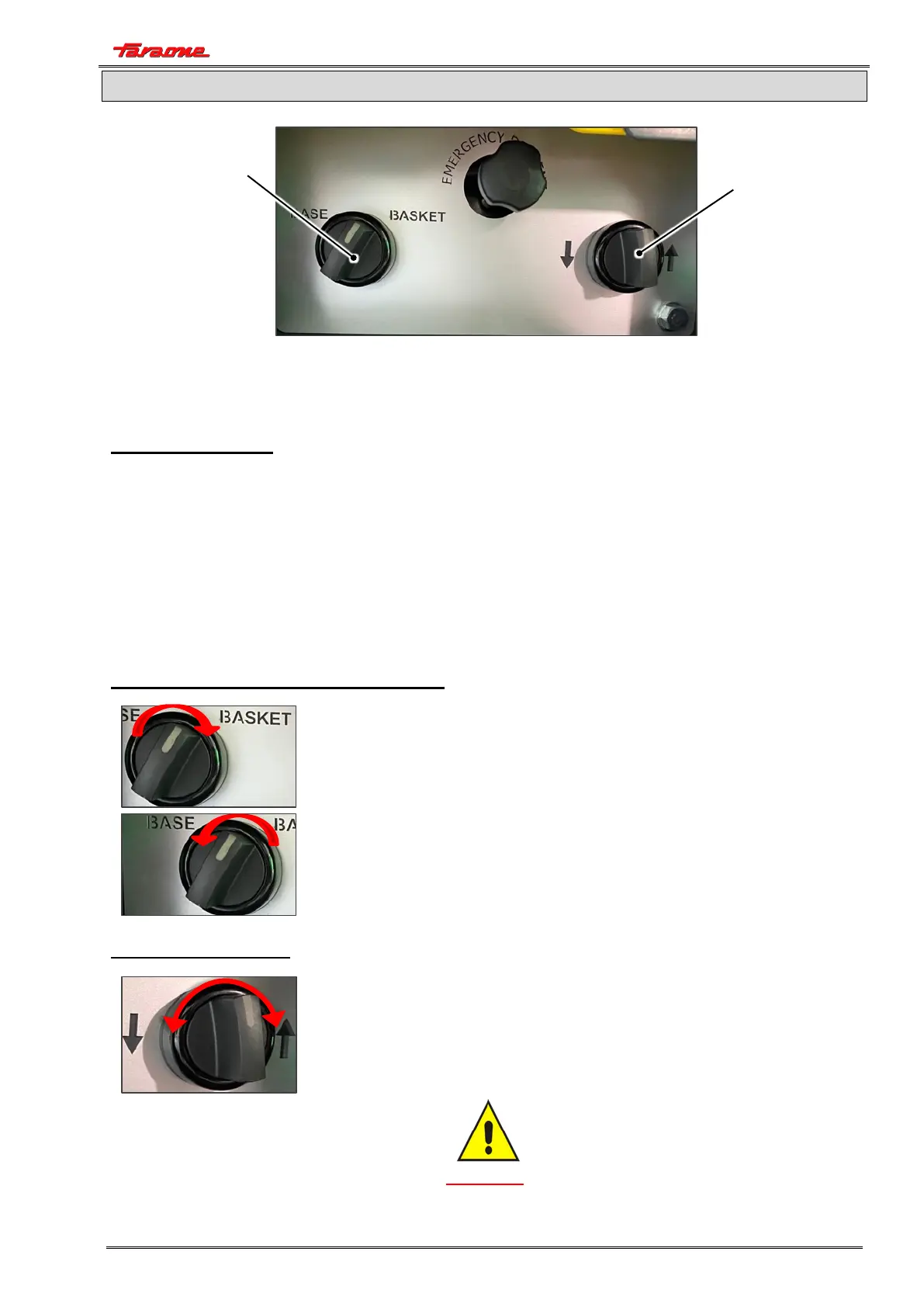 TURN the selector to the RIGHT to RAISE the cage.