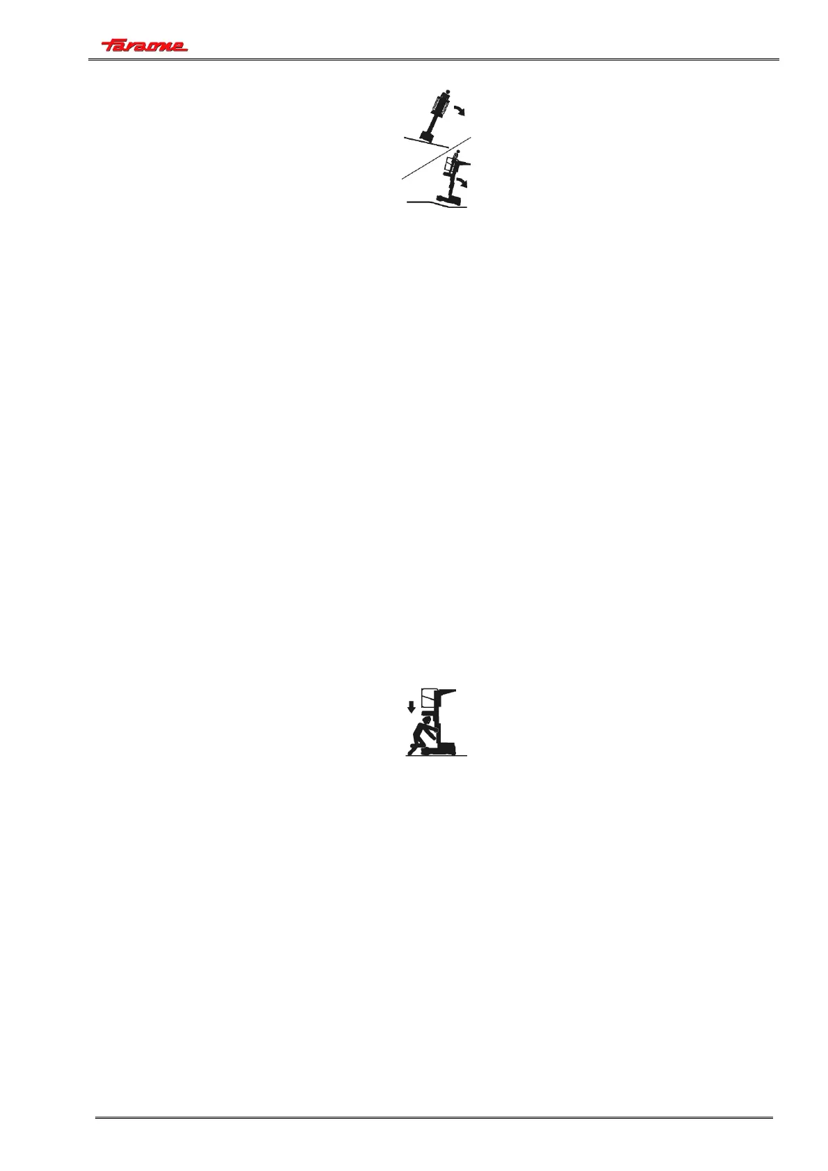 • If the extending structure or the cage get stuck so that one or more wheels are lifted from the