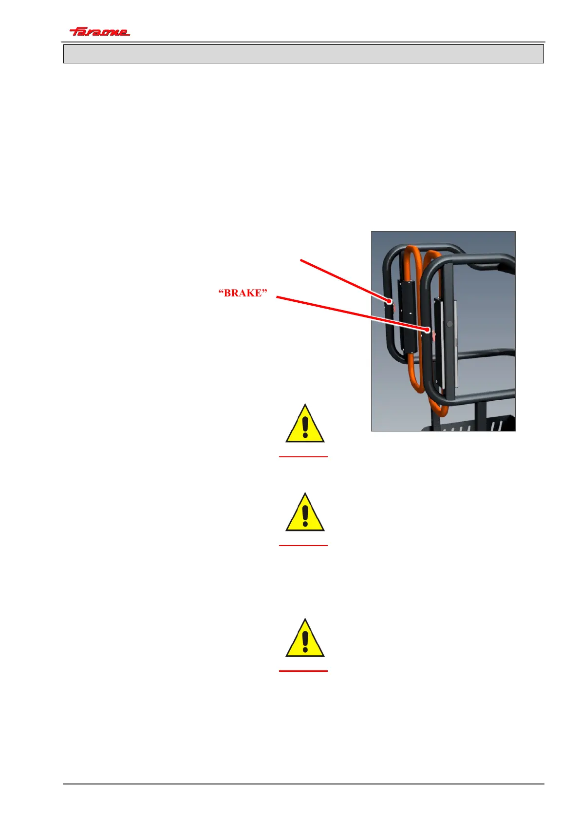 grasping point and simultaneously press the “BRAKE” and “DEAD MAN” buttons, located one on
