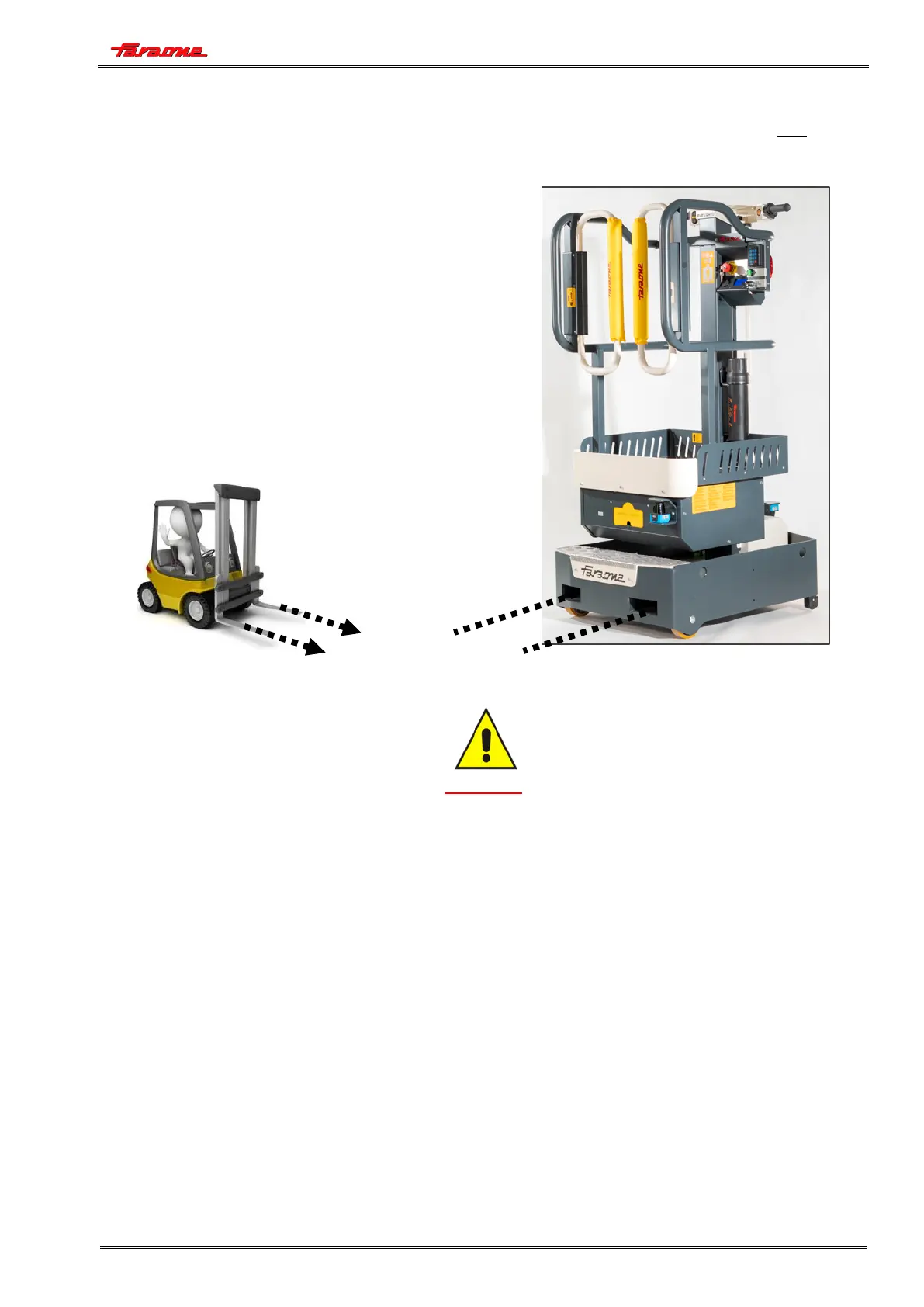 machine in order to position it in a stable manner onto the forks (see picture below).