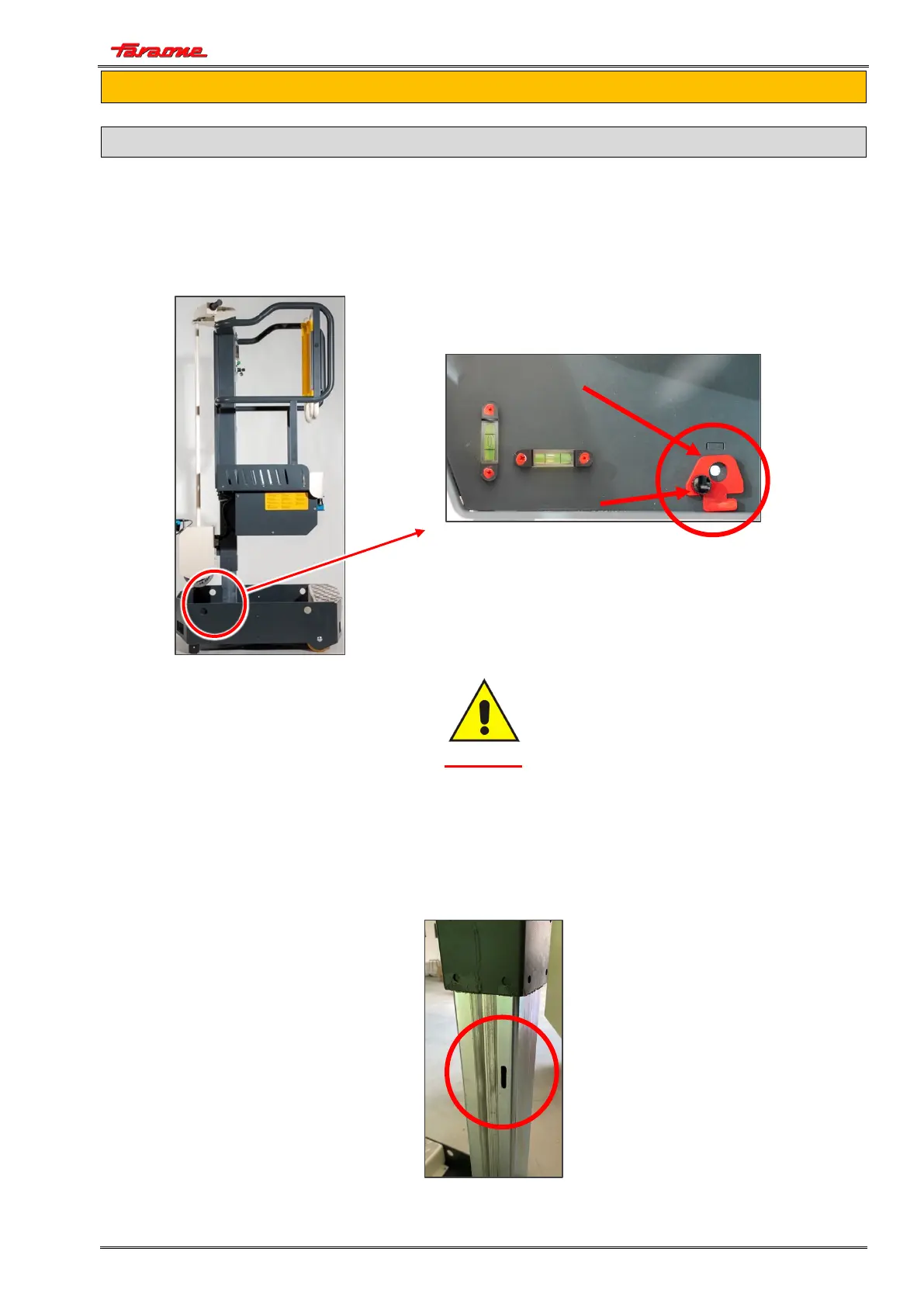 positioning the safety locking pin supplied with the machine.