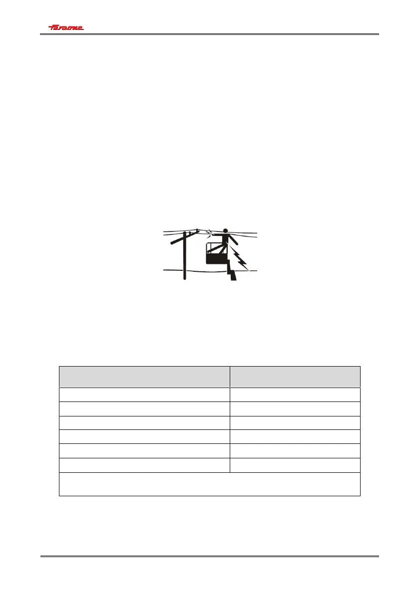 having an electric charge of up to 50,000 Volt. 0.3 m must be added for every