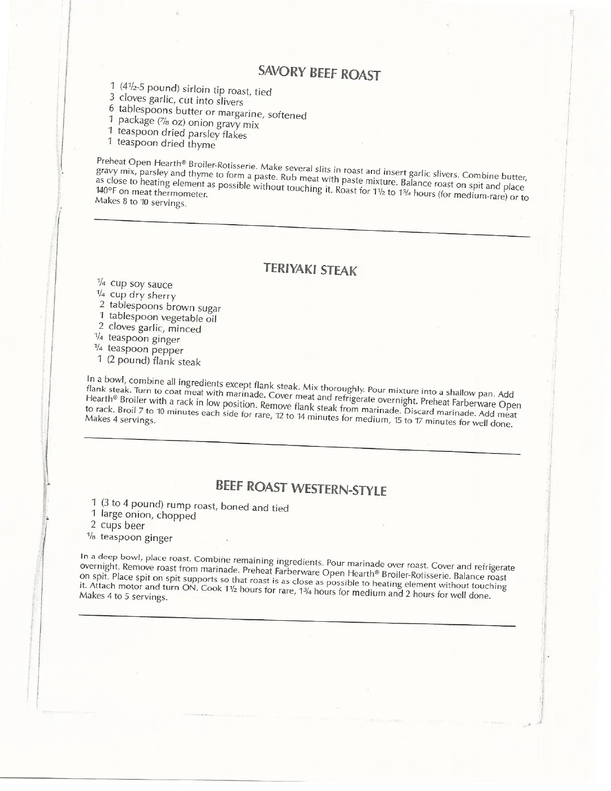 Farberware 455N - Savory Beef Roast; Teriyaki Steak; Beef Roast Western-Style
