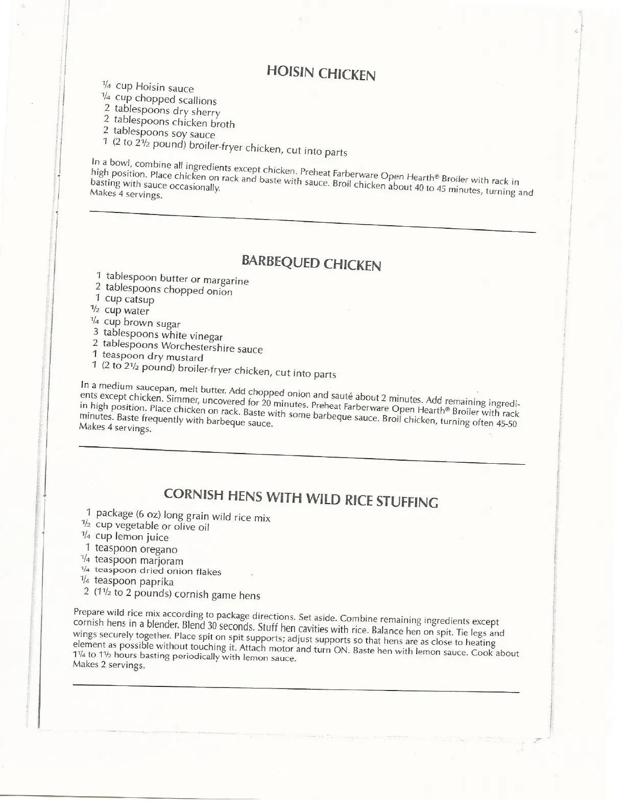 Farberware 455N - Hoisin Chicken; Barbequed Chicken; Cornish Hens with Wild Rice Stuffing