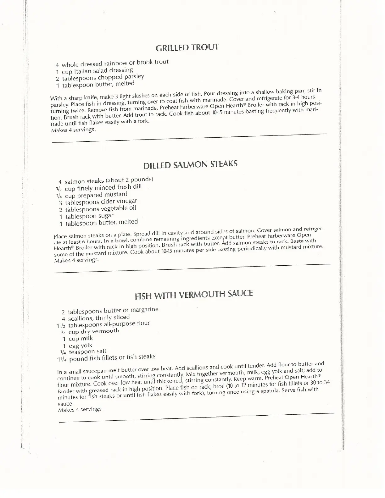 Farberware 455N - Grilled Trout; Dilled Salmon Steaks; Fish with Vermouth Sauce