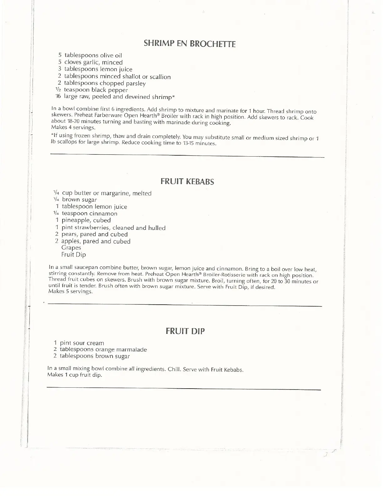 Farberware 455N - Shrimp en Brochette; Fruit Kebabs; Fruit Dip