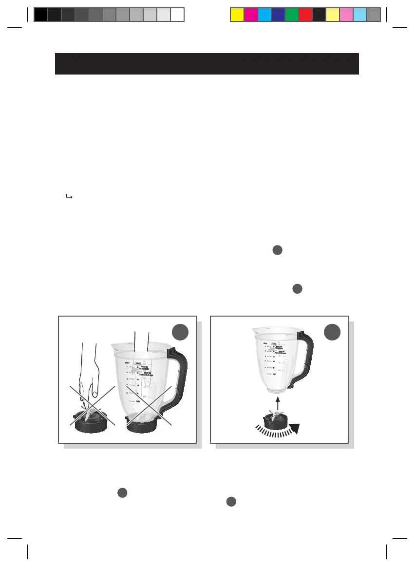 • Turn the Blade Base counterclockwise to secure it to the jar (ill.