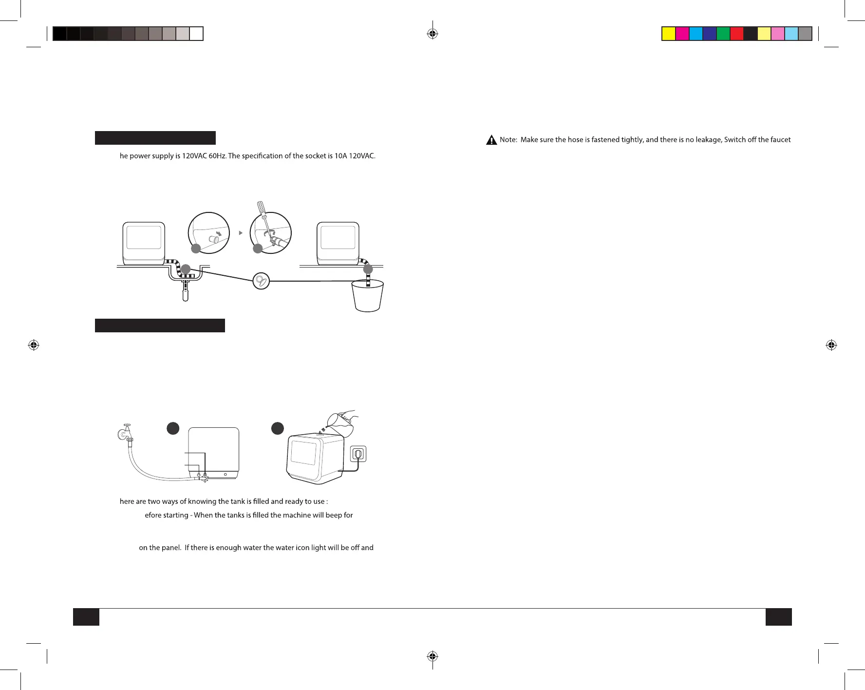 • Please make sure drain hose is positioned in the proper space (I.E sink, bucket, etc) to