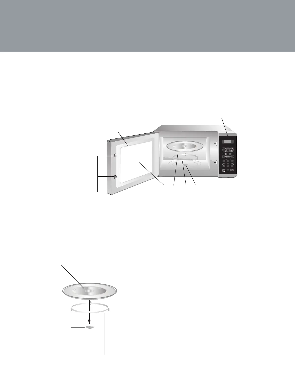 b� Both glass tray and turntable ring assembly must always be