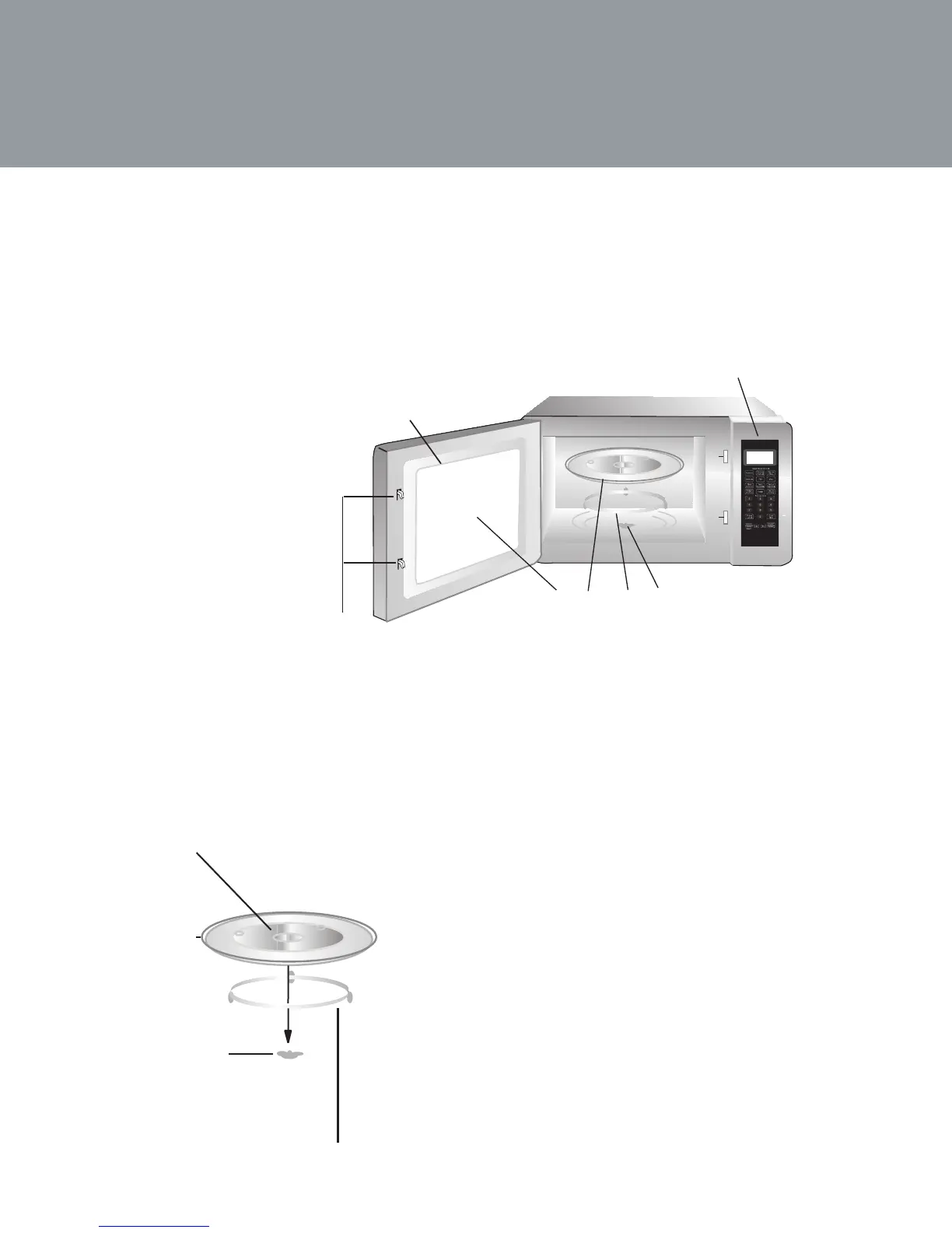 b� Both glass tray and turntable ring assembly must always be