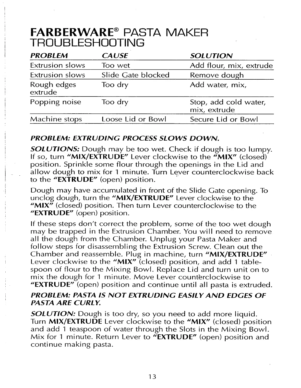 Farberware FPM100 - Troubleshooting; Extruding Process Slows down