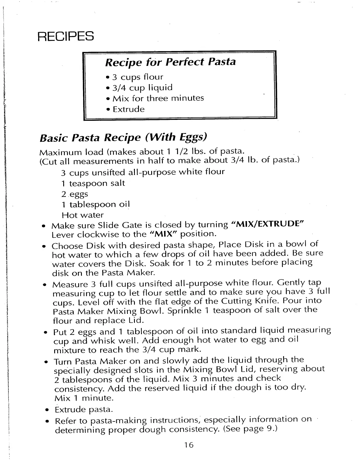 Farberware FPM100 - Recipes; Basic Pasta Recipe