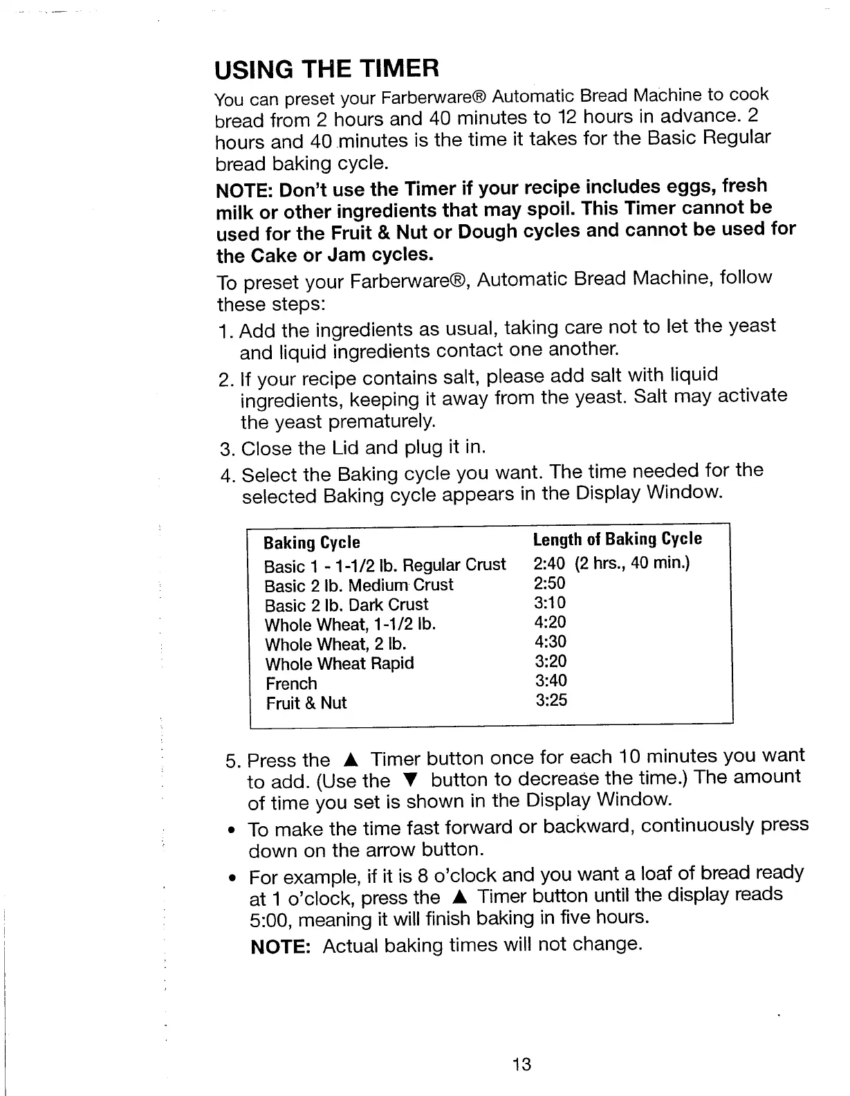 Farberware FTR700 - Using the Timer; For Best Results: Timer Use