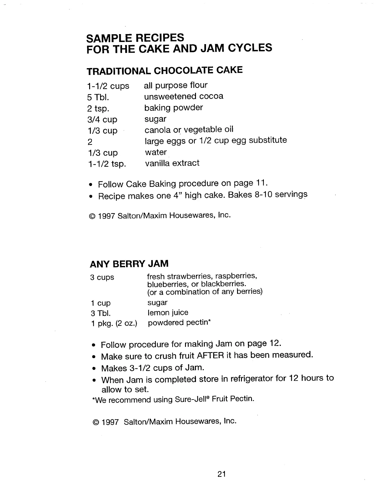 Farberware FTR700 - Recipes for the Cake and Jam Cycles