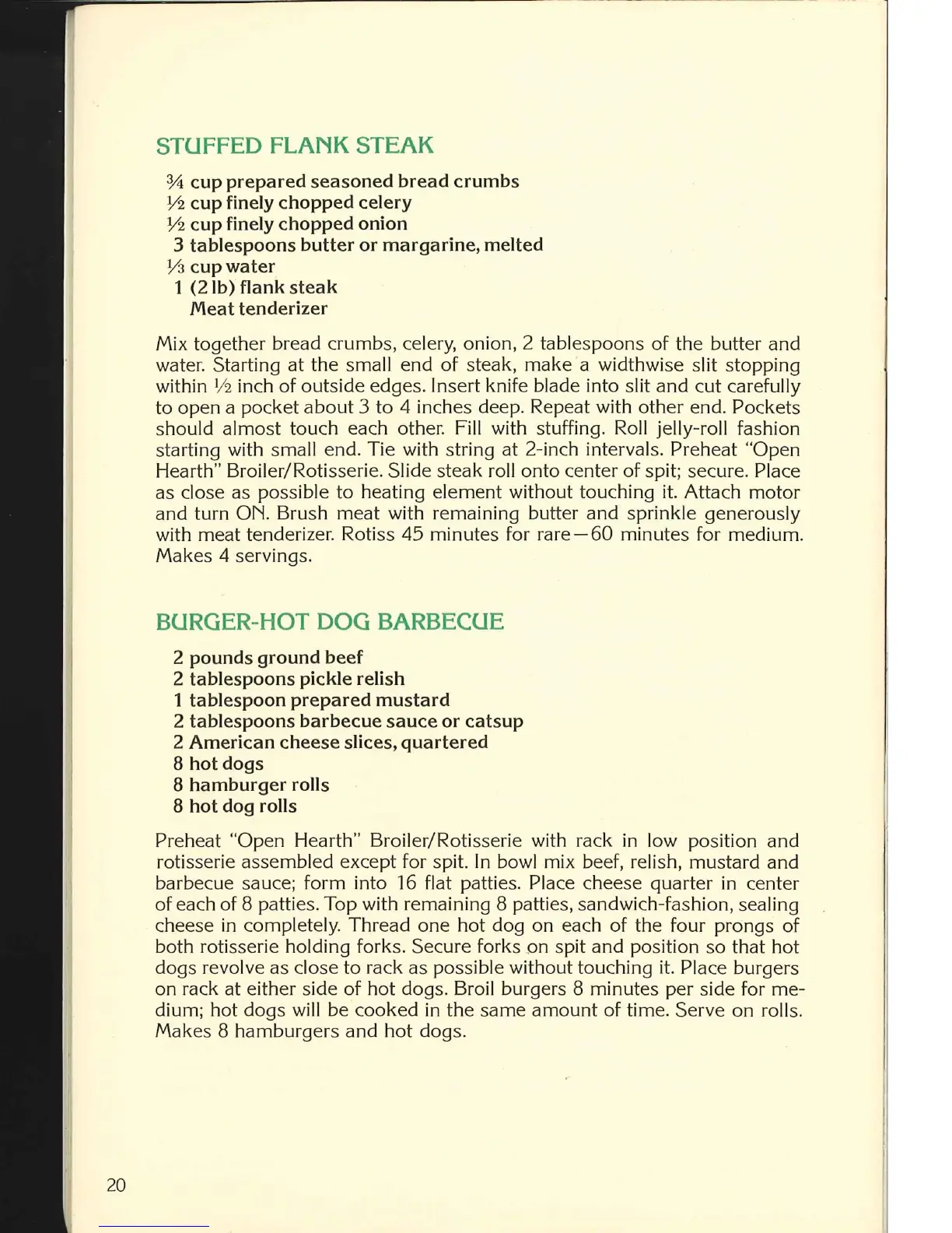 Farberware Open Hearth 455A - Stuffed Flank Steak; Burger-Hot Dog Barbecue
