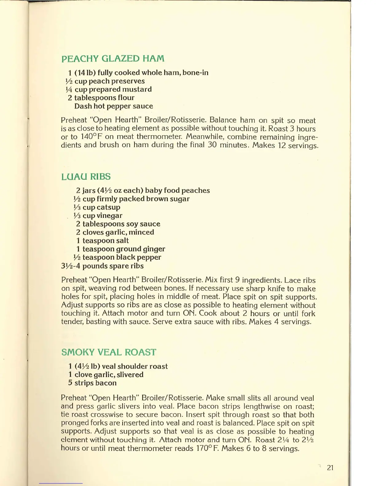 Farberware Open Hearth 455A - Peachy Glazed Ham; Luau Ribs; Smoky Veal Roast