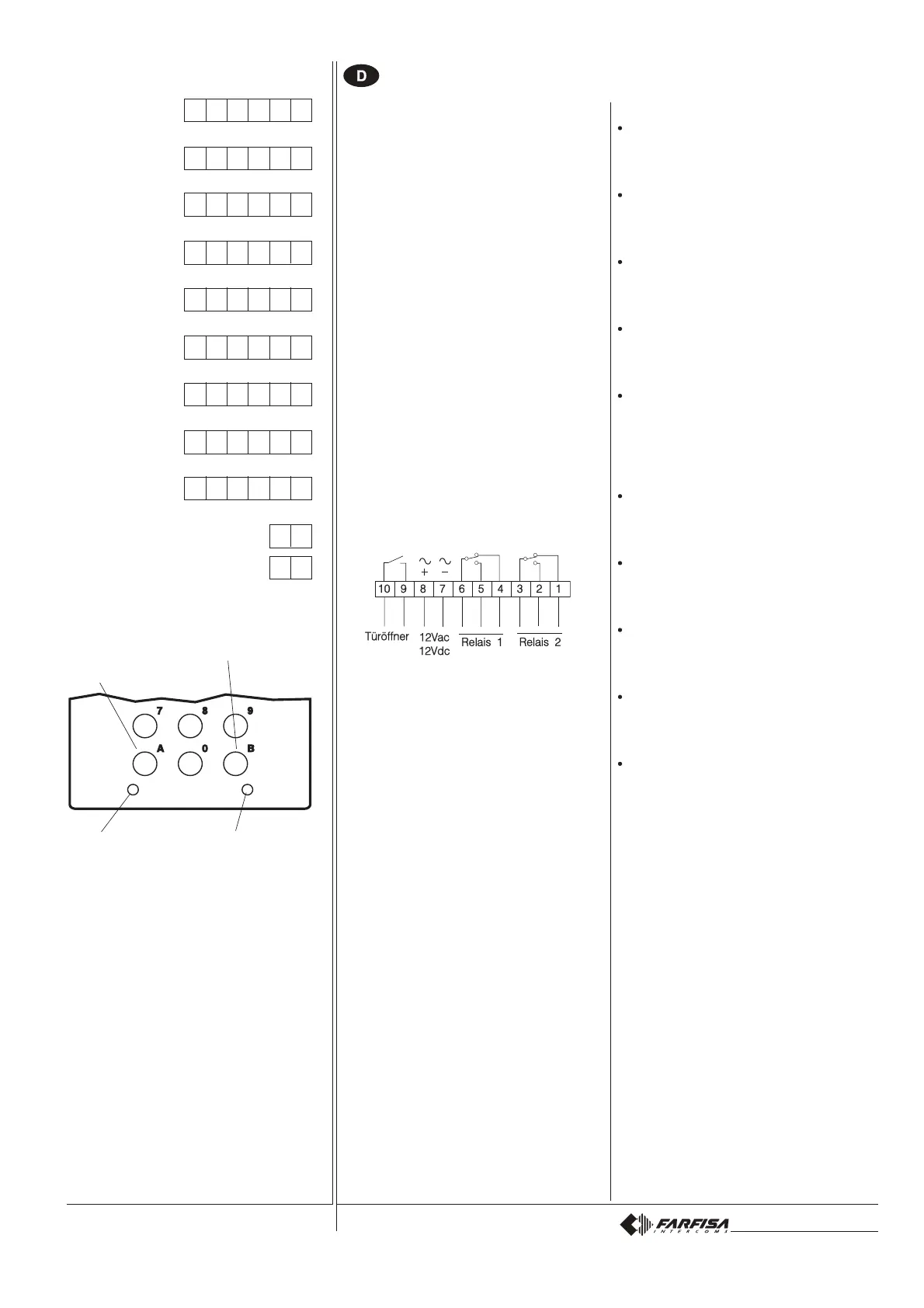 1° Zutrittscode Relais 2: 7890