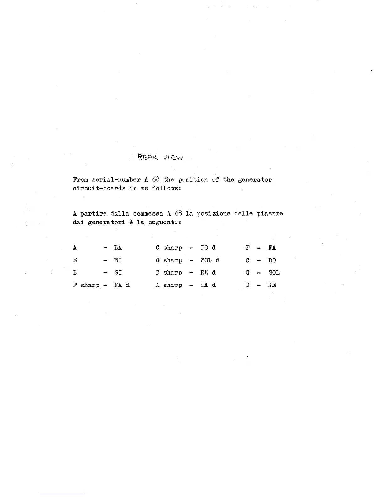 Farfisa Combo Compact - Rear View; Generator Circuit-Board Positions