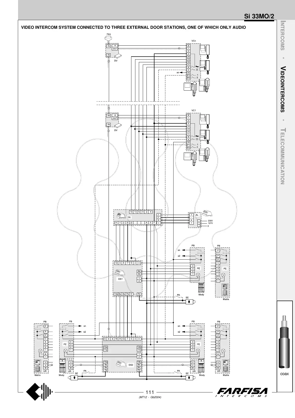 VIDEO INTERCOM SYSTEM CONNECTED TO THREE EXTERNAL DOOR STATIONS, ONE OF WHICH ONLY AUDIO