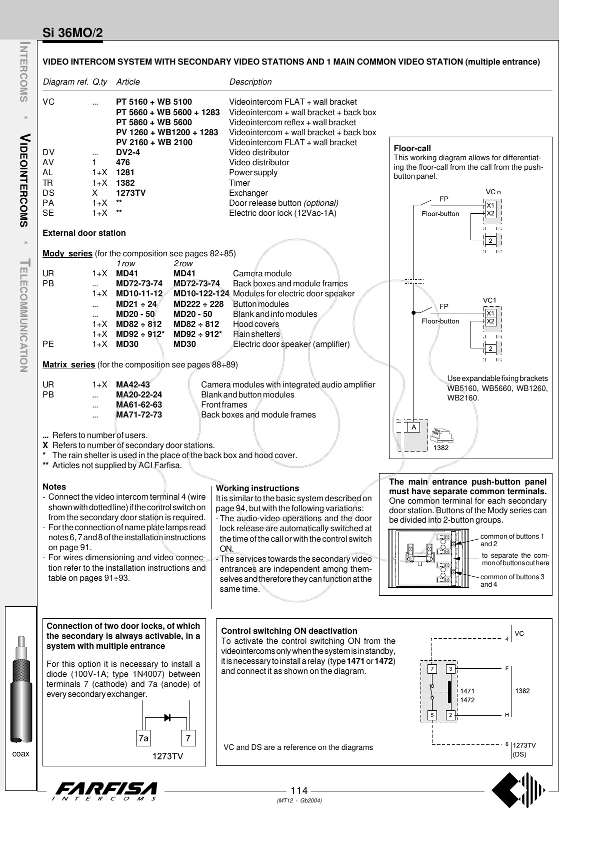 ** Articles not supplied by ACI Farfisa.
