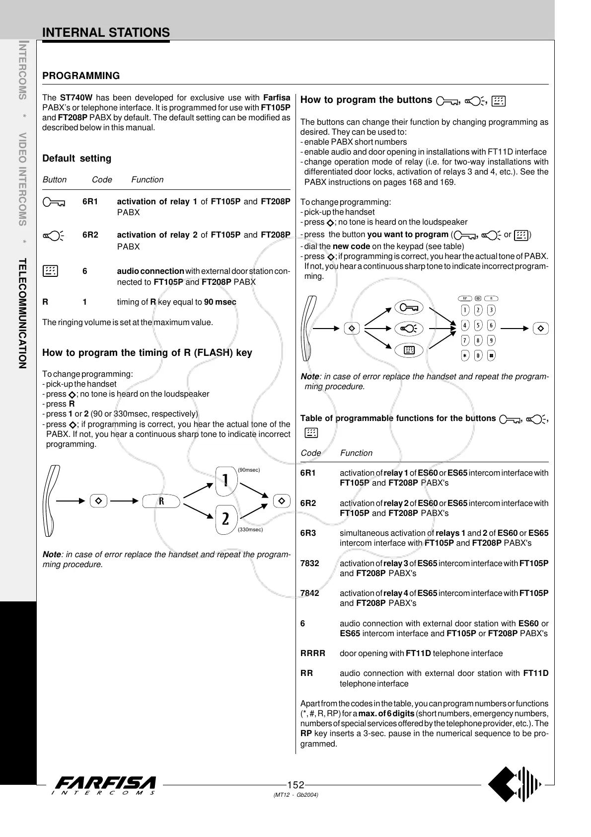 intercom interface with FT105P and FT208P PABX's