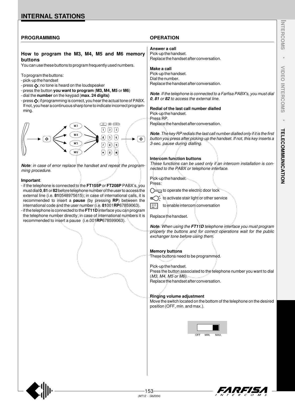 Note. If the telephone is connected to a Farfisa PABX's, you must dial