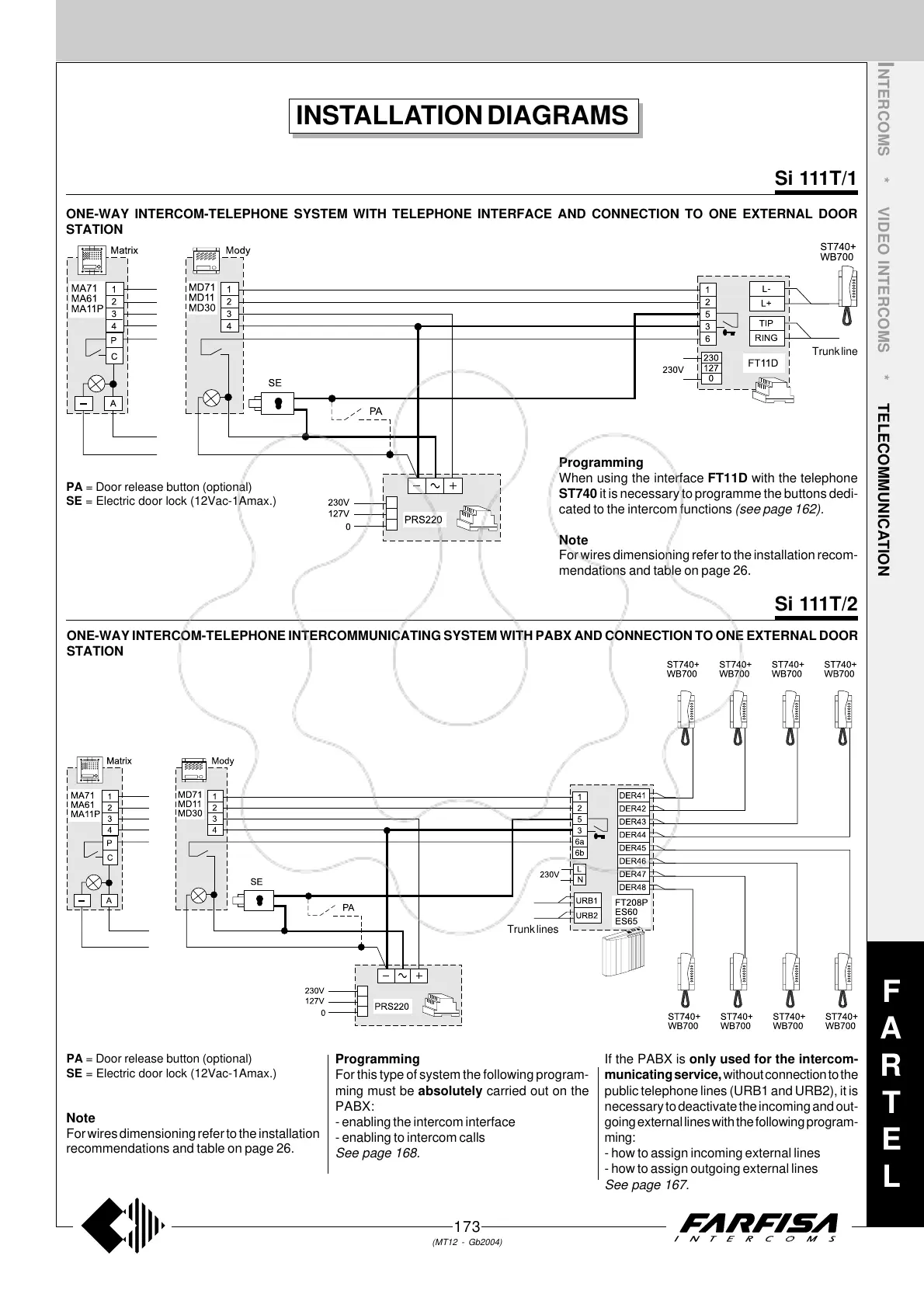 ONE-WAY INTERCOM-TELEPHONE INTERCOMMUNICATING SYSTEM WITH PABX AND CONNECTION TO ONE EXTERNAL DOOR