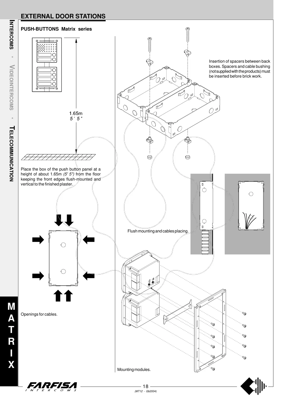 boxes. Spacers and cable bushing