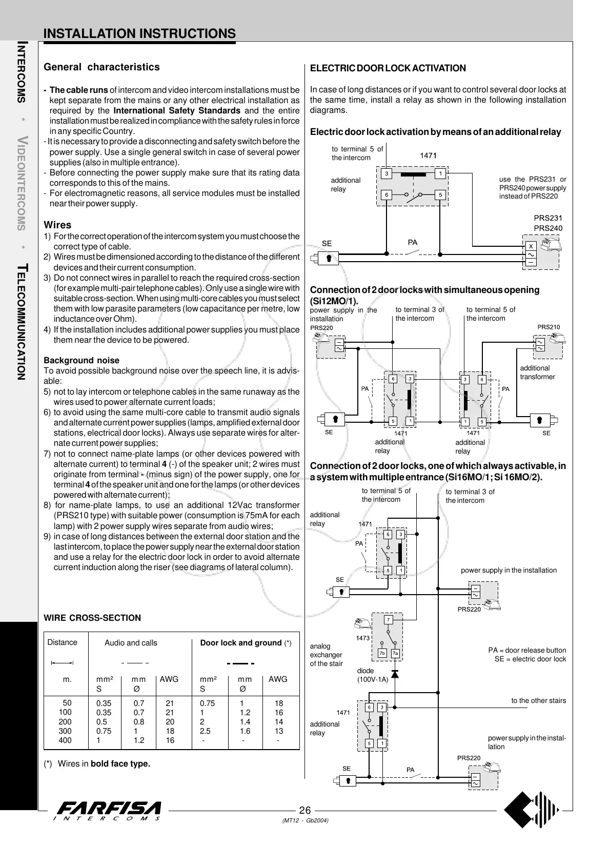 stations, electrical door locks). Always use separate wires for alter-
