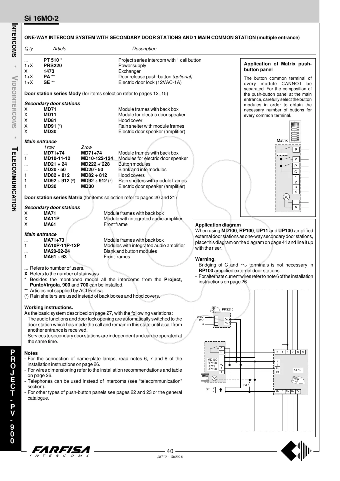 1 MD10-11-12 MD10-122-124 Modules for electric door speaker