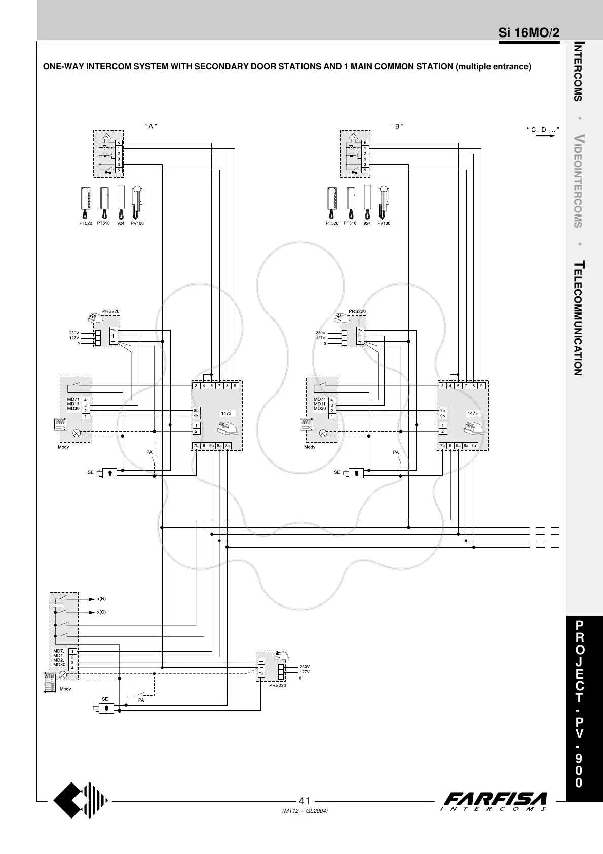 ONE-WAY INTERCOM SYSTEM WITH SECONDARY DOOR STATIONS AND 1 MAIN COMMON STATION (multiple entrance)