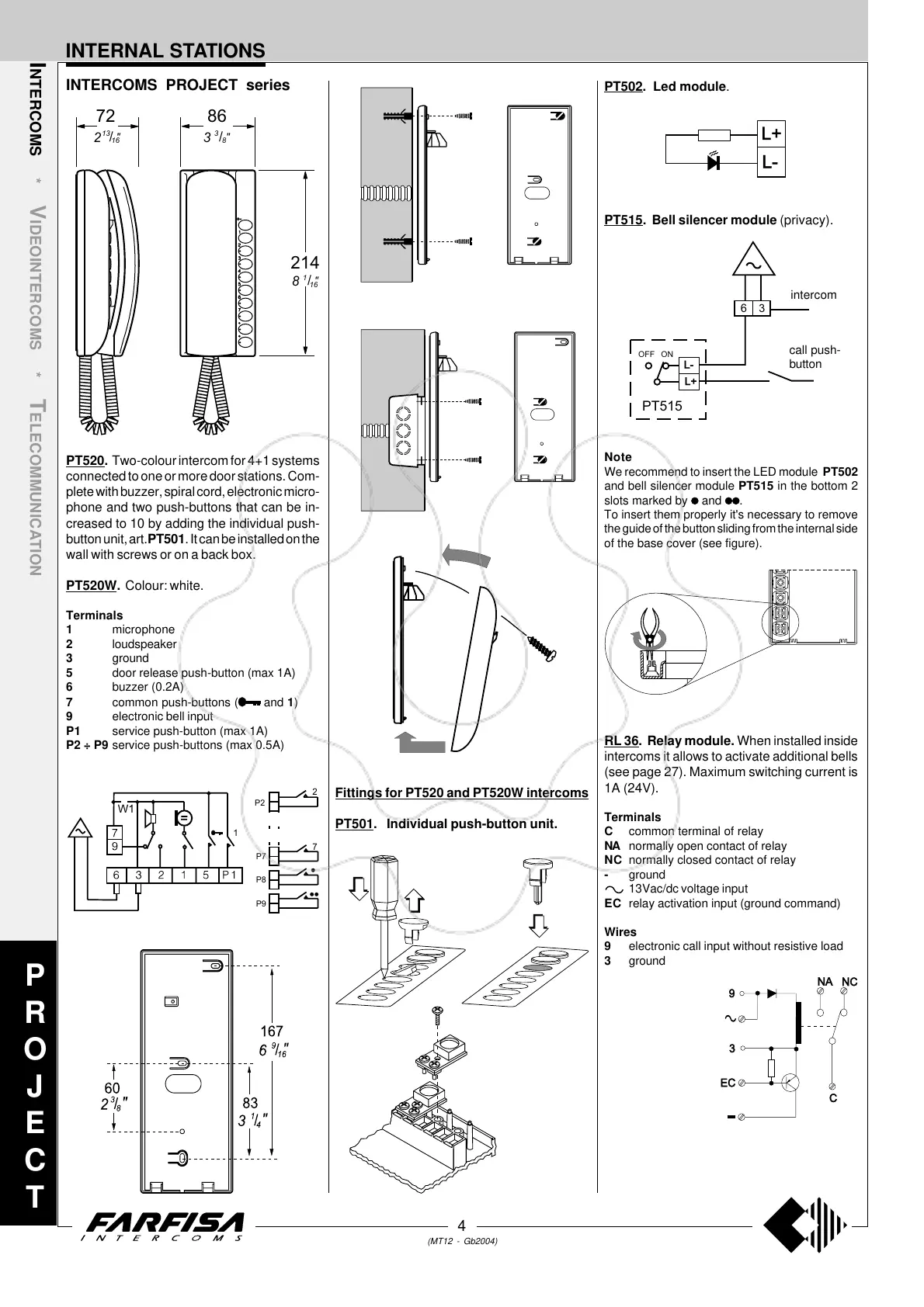 Fittings for PT520 and PT520W intercoms