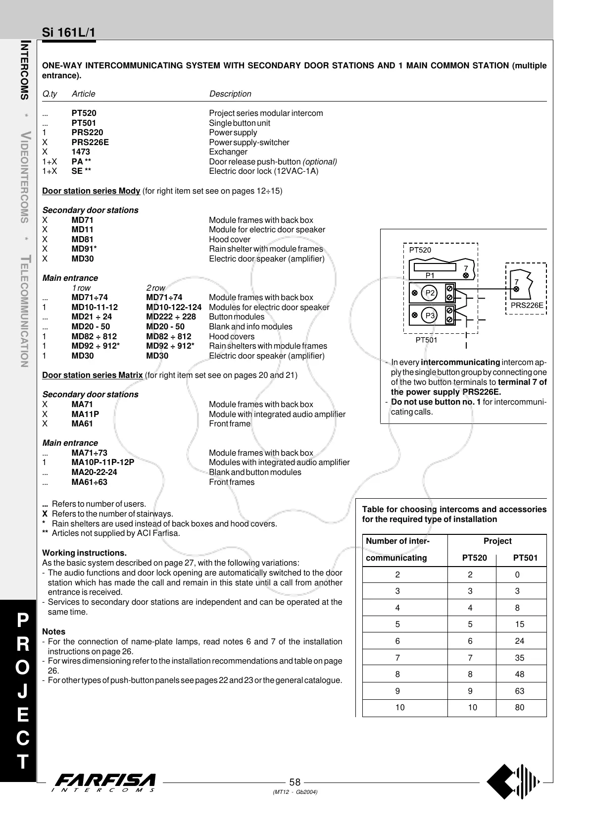 1 MD10-11-12 MD10-122-124 Modules for electric door speaker