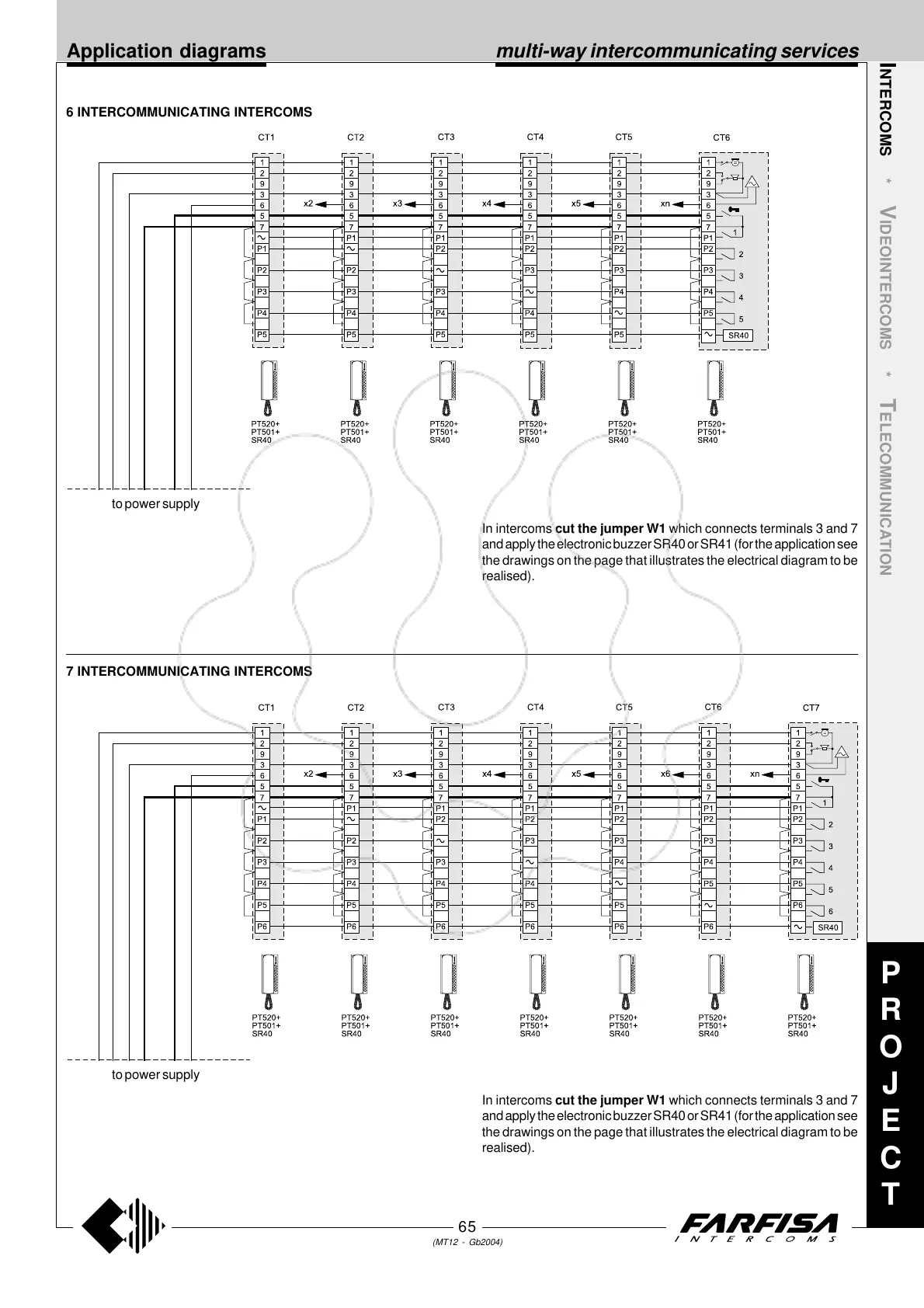 In intercoms cut the jumper W1 which connects terminals 3 and 7
