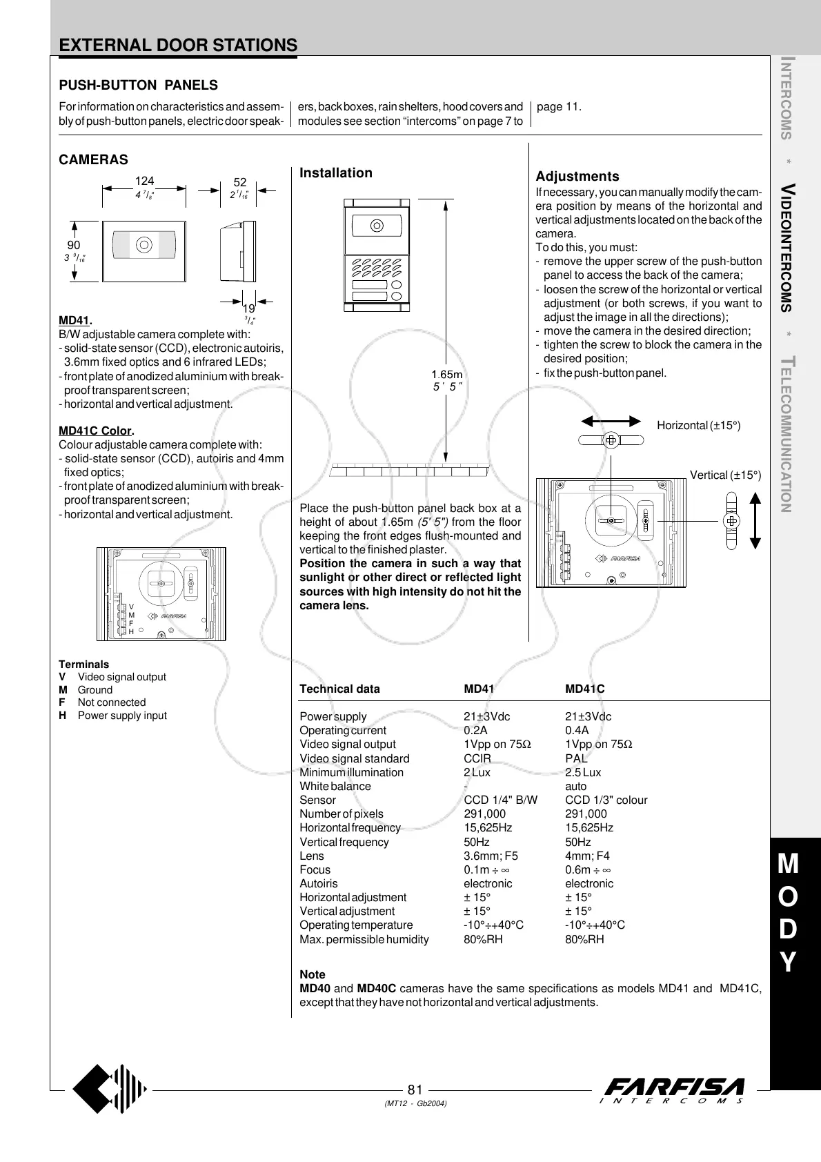 MD40 and MD40C cameras have the same specifications as models MD41 and MD41C,