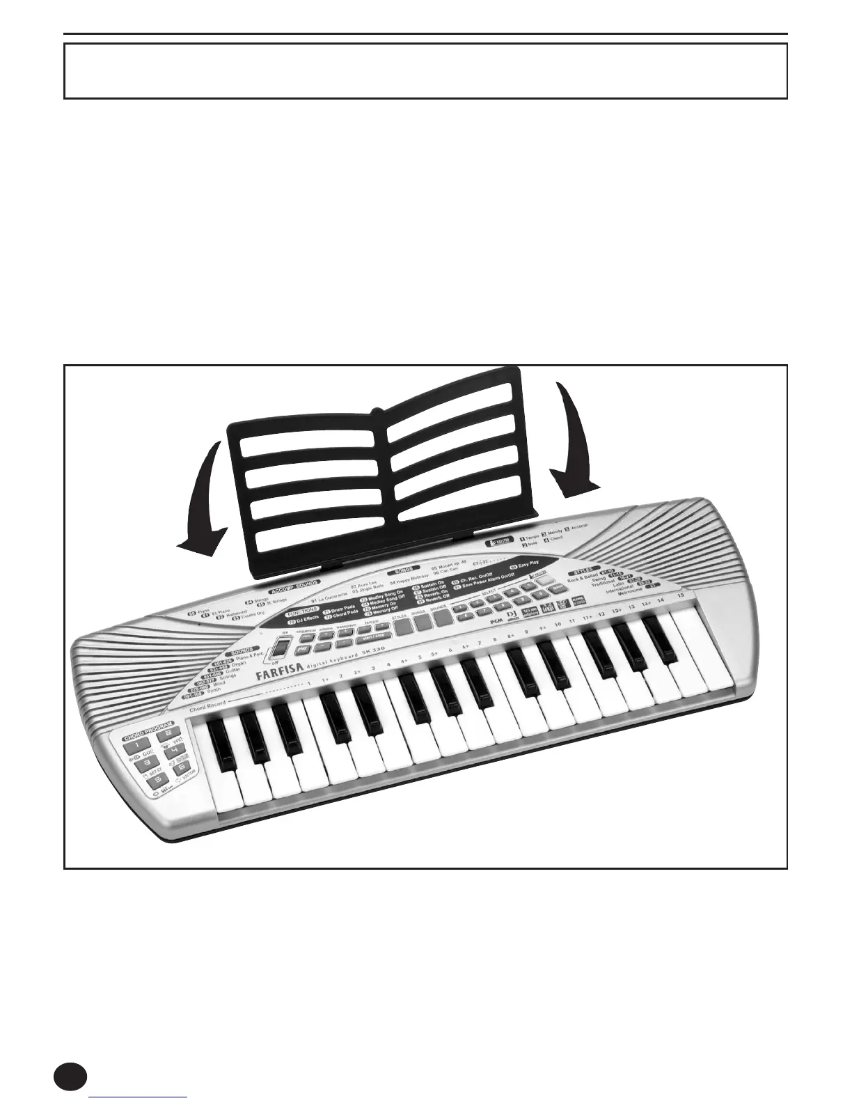 D Den Notenständer in die entsprechenden Bohrungen einsetzen.