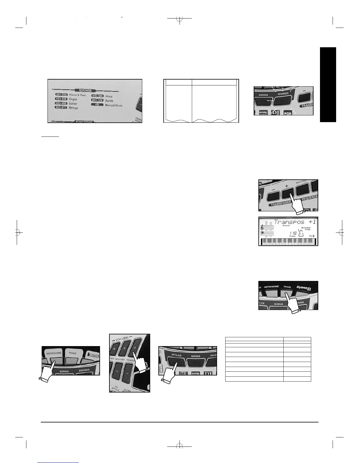The TRANSPOSER variation is always indicated on the display by the “< Tr “ or “ Tr > “ signs.