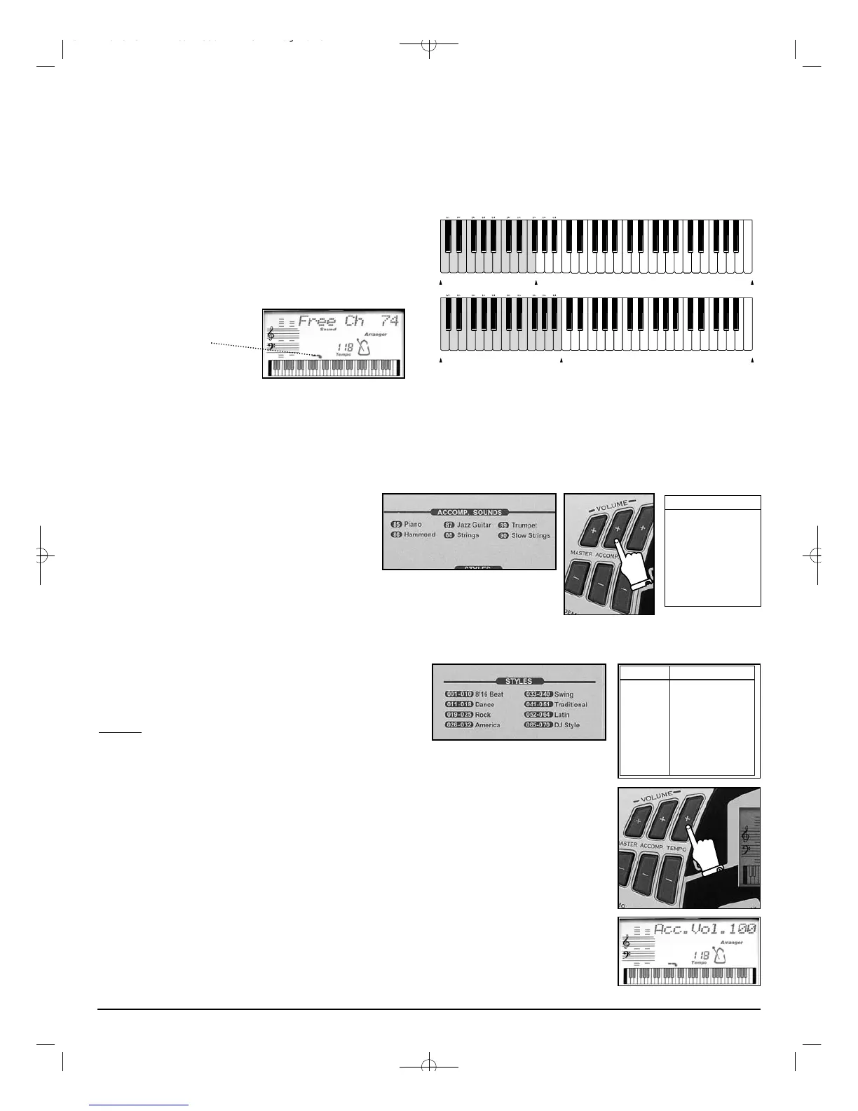 press together buttons VOLUME ACCOMP. + and VOLUME ACCOMP. –.