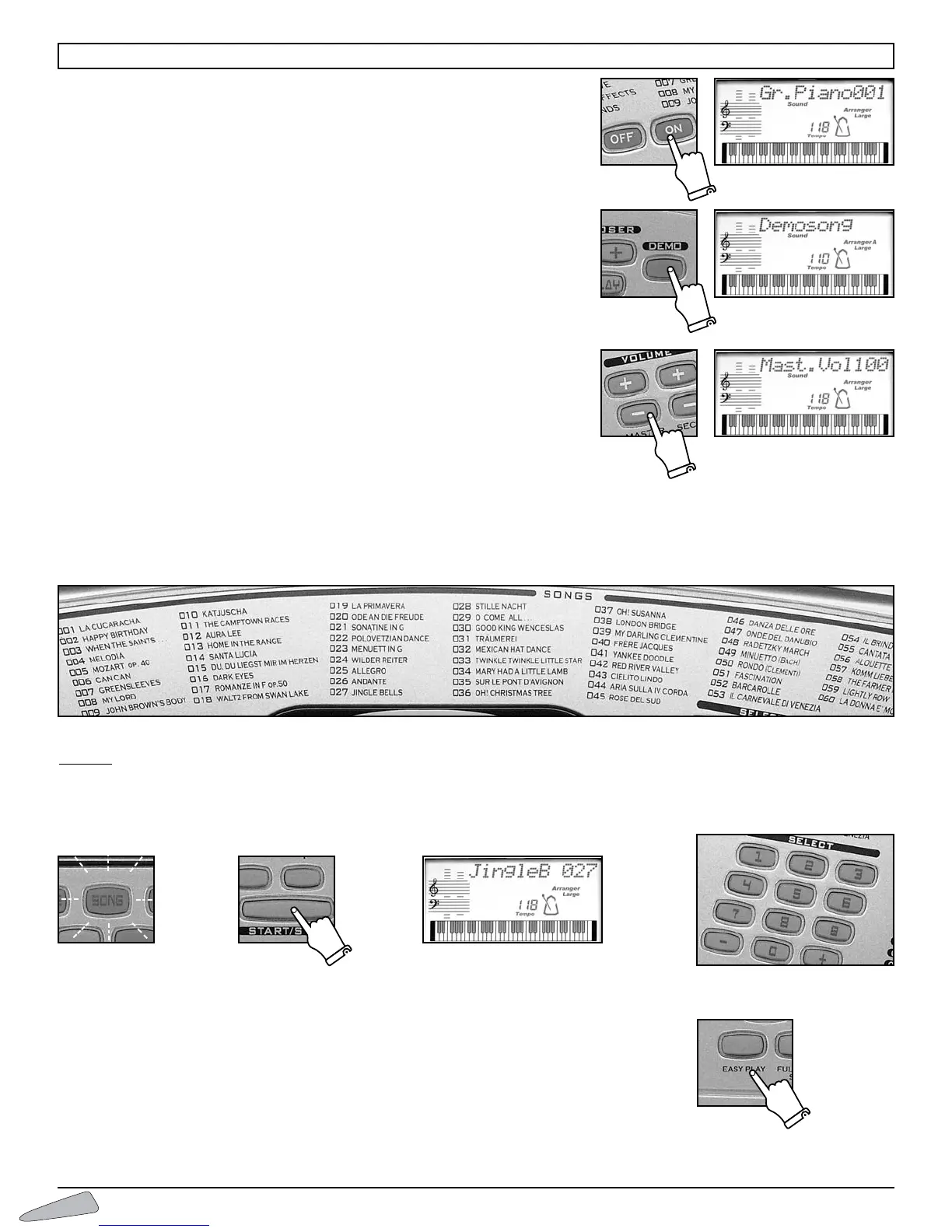 To select the songs, enter a three digit number according to the SONGS list.