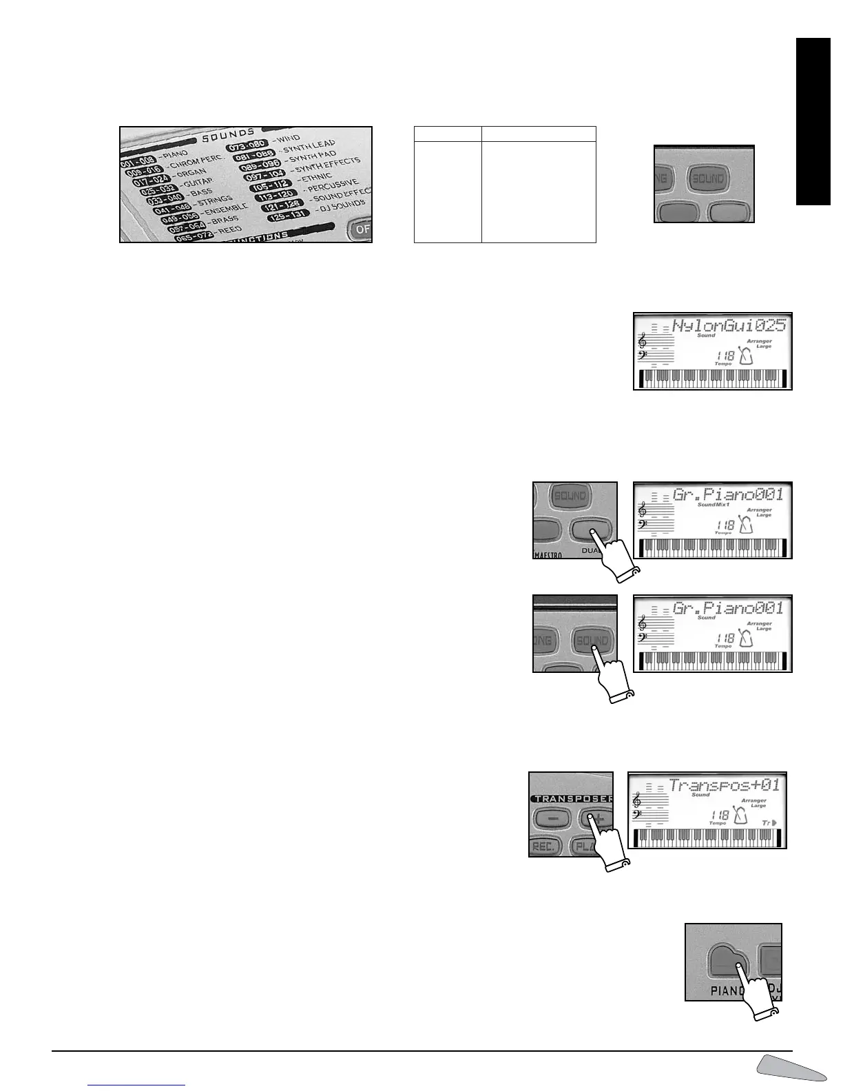 Sounds can be selected also by using the SELECT “+ / –” buttons.