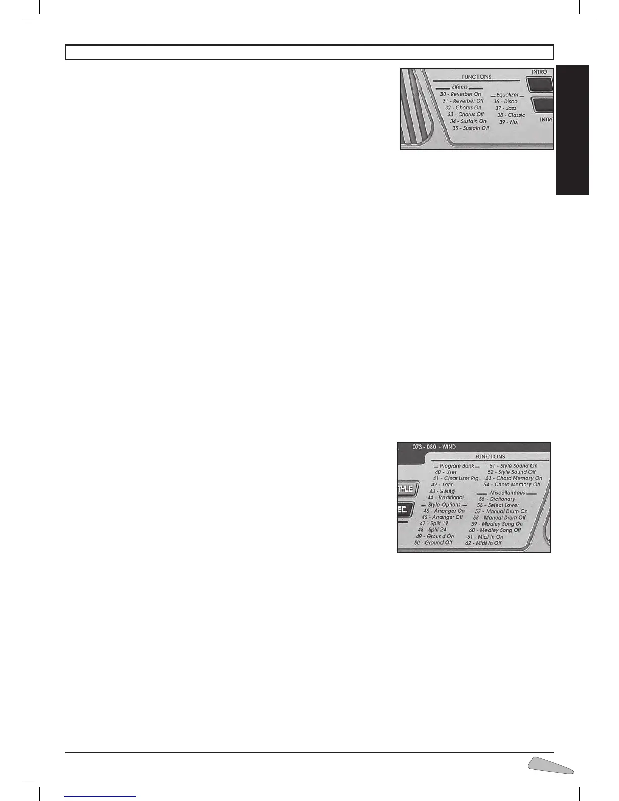 digit number 30 Reverber On, and to switch off digit number 31 Reverber Off.