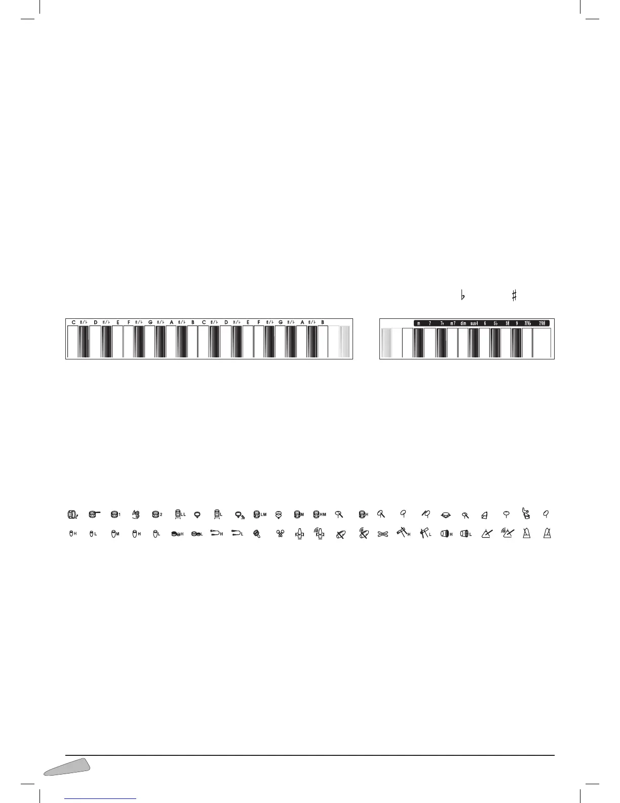 first two octaves on the left, you can choose the basic tonality C, D, E, F, G, A or B with the corresponding “