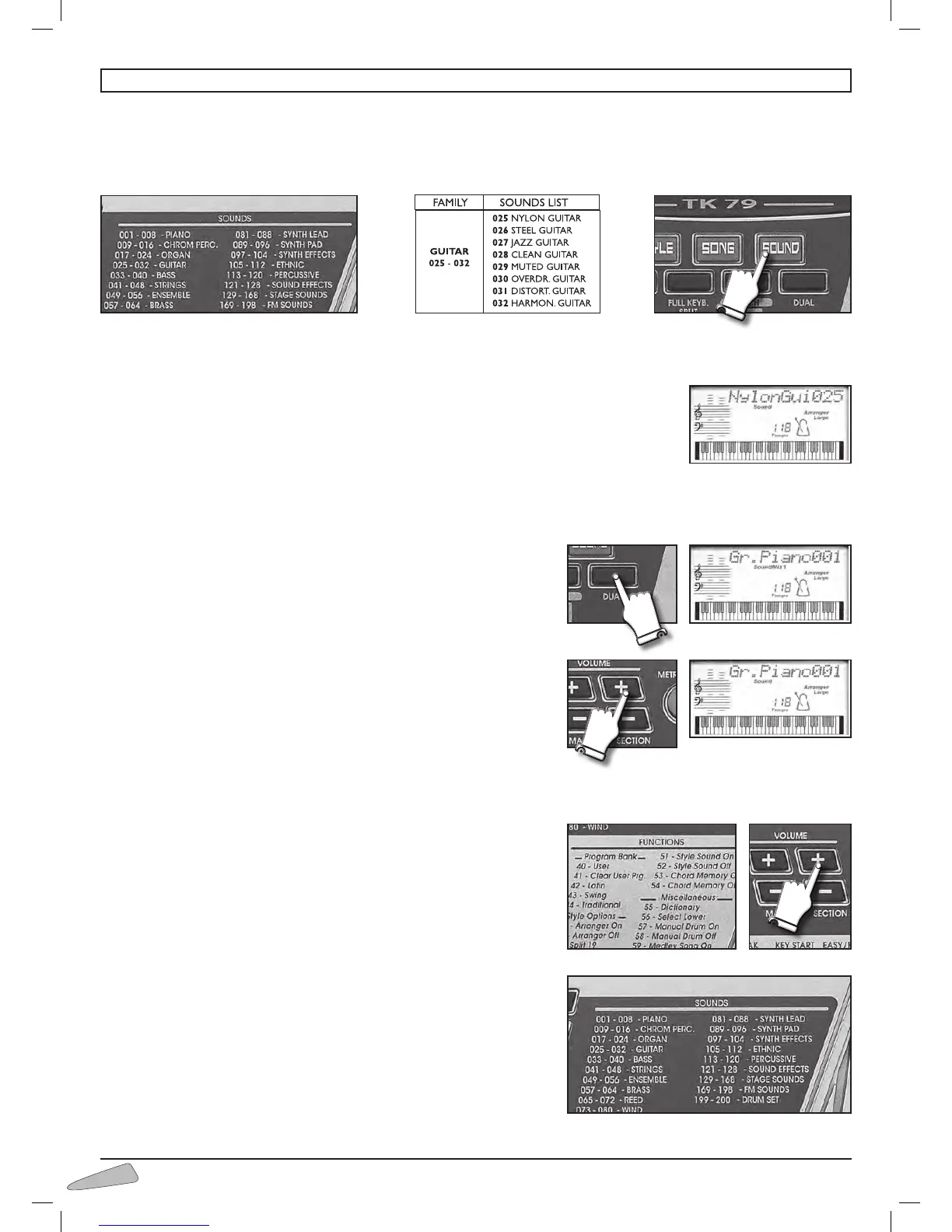 Example: for NYLON GUITAR type in number 025 (0, 2, 5 with the SELECT keyboard.)