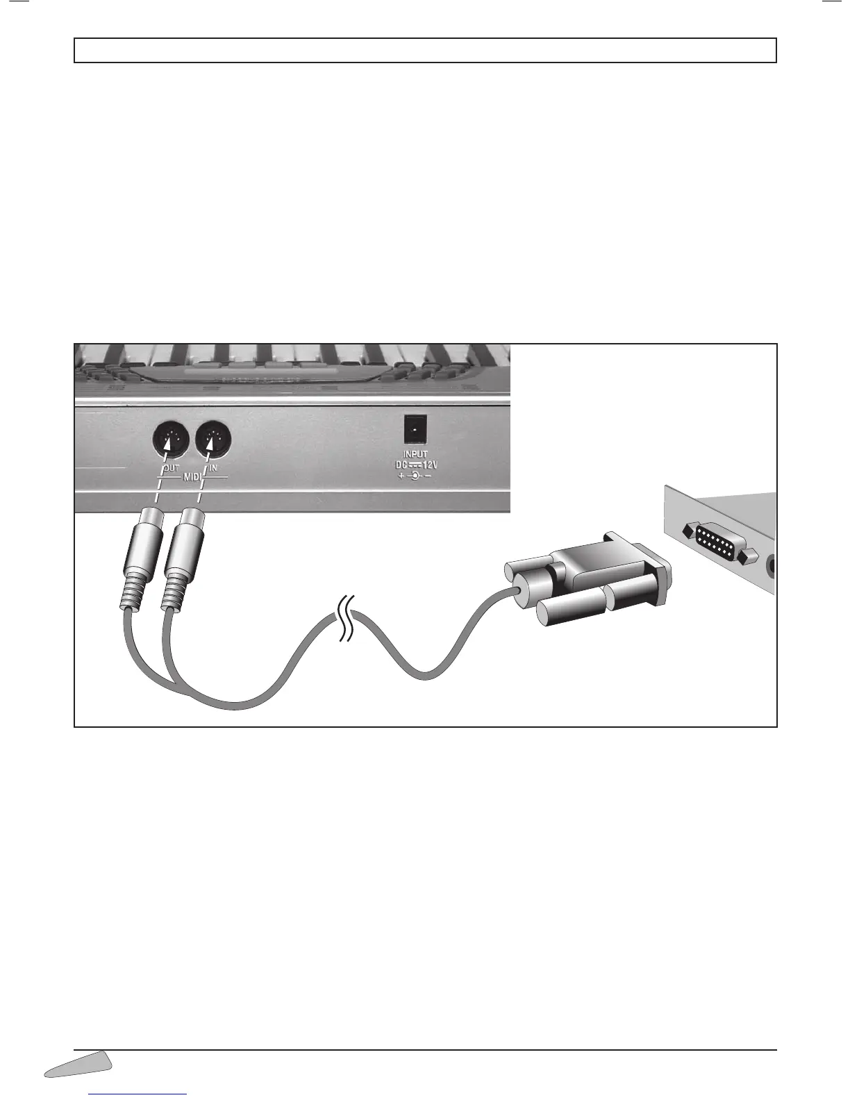 The keyboard is provided with MIDI IN and OUT sockets which enable the user to connect it to a Personal Computer