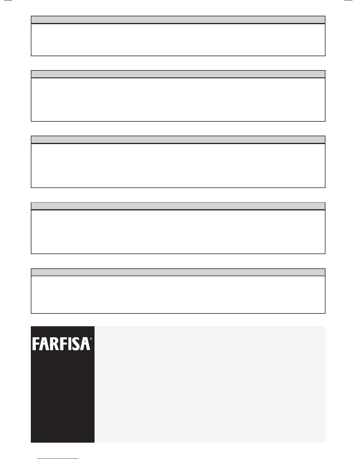 Esta garantia es valida cuando se incluye correctamente la información solicitada y se devuelve, por correo, a la oficina autorizada de Farfisa (ver