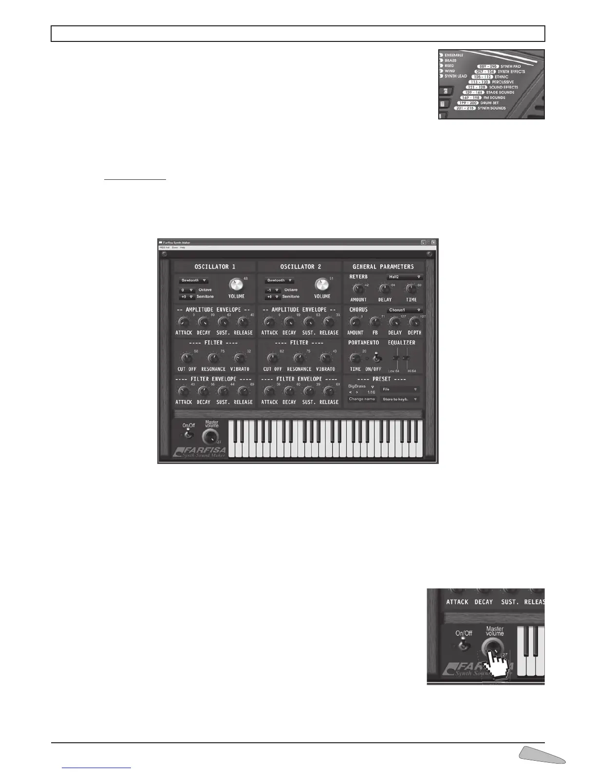 First turn on the keyboard and then open “FARFISA Synth Sound Maker” . The PC will display the following mask: