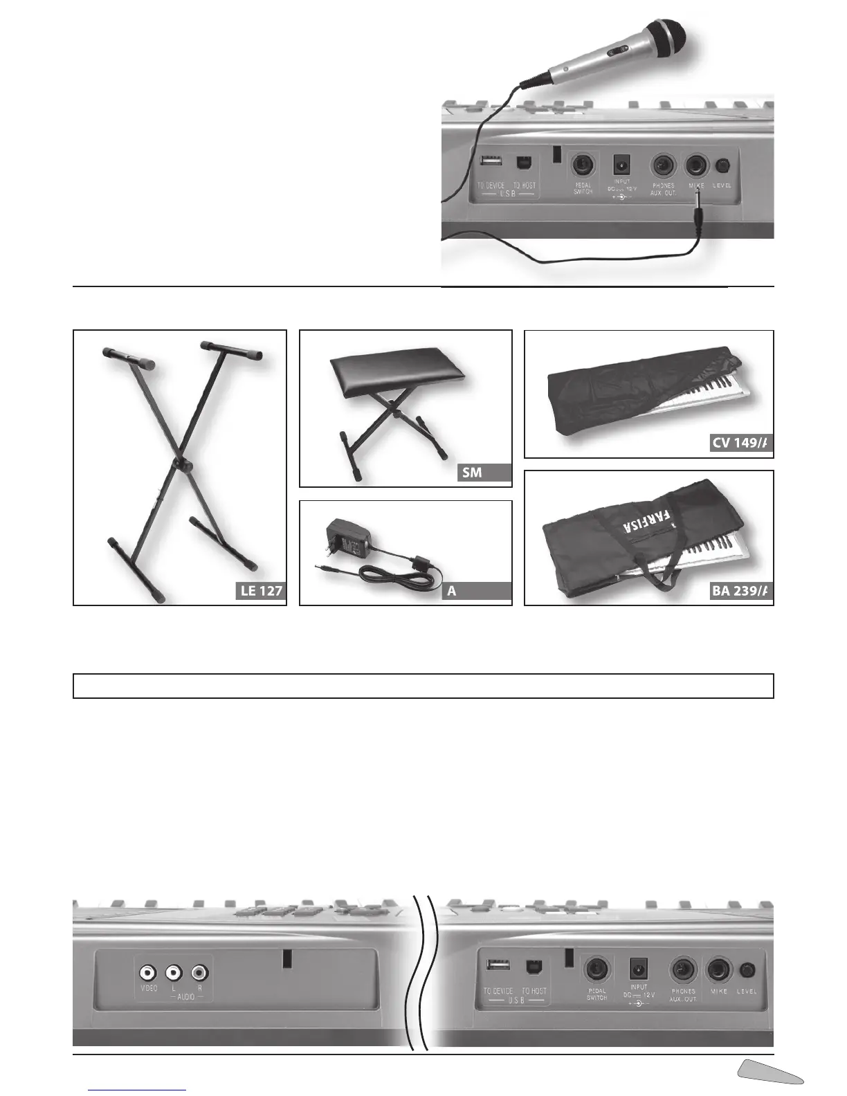ATTENTION: Use only the optional accessories specially for this keyboard. Use of unauthorised accessories can entail danger of